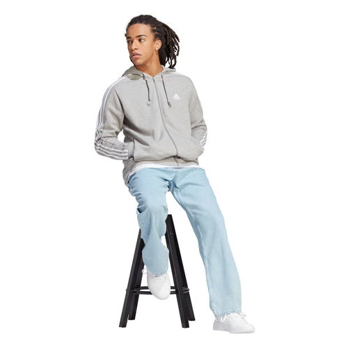 Essentials French Terry 3-Stripes Full-Zip Hoodie Men – Lightgrey, White