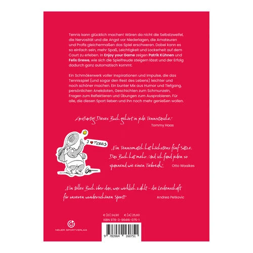 Tennis can make you happy! If it weren’t for the self-doubt, nervousness and fear of defeat that make the game difficult for amateurs and professionals alike. Yet it can be so easy to experience more fun, ease and relaxation on the court. In Enjoy your Game, Patrik Kühnen and Felix Grewe show how to increase the joy of playing and how success comes automatically.